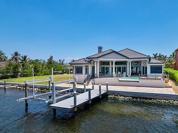 Luxurious Waterfront Living in the Prestigious Gated Community of Catalpa Cove. This beautifully updated estate offers over 3,500 square feet of refined living space with 4 bedrooms, 4.5 bathrooms, plus a private 1 bedroom, 1 bathroom guest suite with a partial kitchen—perfect for visitors, or a secluded workspace. From the moment you step through the front door, the home welcomes you with soaring ceilings, Great natural light, and stunning river views that stretch across the formal living and dining areas. The gourmet kitchen is both spacious and functional, featuring extensive counter space and an open layout that flows seamlessly into the family room—ideal for entertaining or everyday living. The VIP suite is thoughtfully positioned for privacy and showcases expansive water views, a spa-inspired bath, and generous closet space. Each additional bedroom includes its own ensuite bathroom, creating a private and comfortable space for family and guests alike. Outdoors, the home truly shines. An oversized paver lanai frames a saltwater infinity-edge pool and spa, offering a peaceful escape surrounded by breathtaking waterfront scenery. The attached guest suite, located just off the lanai, can also serve as a convenient pool bath. Boaters will love the private dock outfitted with a 16,000 lb. lift, power, and water connections, alongside a raised seawall and approximately 80 feet of direct river frontage. Recent updates add to the home's value and peace of mind: a 2022 roof, 2-zone HVAC with dehumidifier and UV purification (2021), Storm Smart Kevlar storm screens, new exterior and interior paint, upgraded irrigation running on a private well, and a dual propane tank setup with generator-ready electrical panel. Best of all, this home remained high and dry—no water intrusion in either the main residence or garage during any storms. Located just minutes from fine dining, marinas, and the white-sand beaches of Sanibel and Captiva, this is a rare opportunity to own a truly turn-key waterfront residence in one of Southwest Florida’s most sought-after communities.