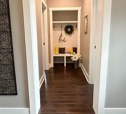 Fabulous split bedroom ranch on a beautiful green beltway in the Meadows of Fox Run. From the window boxes that greet you in front to the well-landscaped getaway in the back, this home exudes style! Enter into a spacious foyer area with 12' ceilings and archways which pass by the dining area and opens to an airy great room with 16' ceilings and lots of windows. The kitchen is a dream with a breakfast bar/island, walk-in pantry with built in drawers, adjoining cozy hearth room and covered deck beyond. The master suite has it all with a hip vault ceiling, dual vanities, walk-in his and her closets, and a huge shower. The master conveniently connects to the laundry room. Two additional bedrooms upstairs share a jack & jill bath with vanities at each end.
