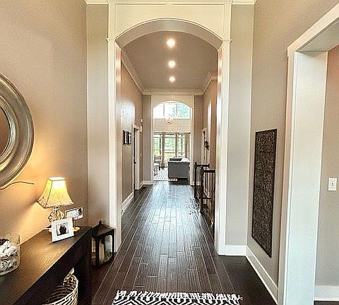 Travel down the beautiful open stairway to the unfinished walkout basement.....extras include...security system, outdoor cameras, surround sound inside and out, beautiful trim work, and hardwoods throughout.