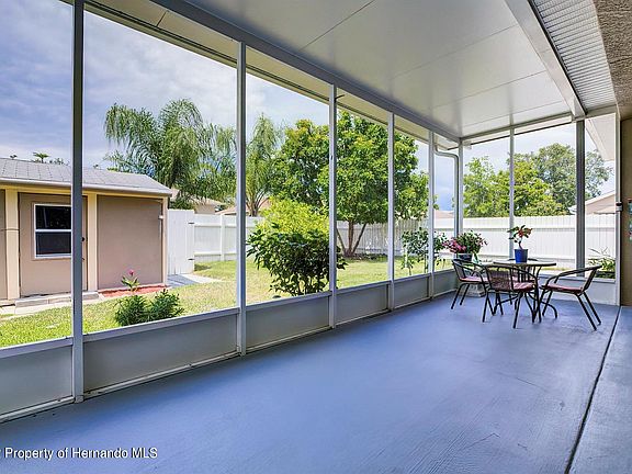 Move in ready and REMODELED, Must See Kitchen, 3/2/2 & Over 2700SqFt Total under roof and 1700 Sqft Heated & Newer AC 2021! Welcome to this immaculate home in Deerfield Estates With COMMUNITY POOL. Incredible LOW HOA $38/Monthly. The beautiful community showcases a clubhouse with an oversized pool, gym, playground, tennis & basketball courts so there's plenty to do prior to your cookouts/family time out back the spacious lanai. This modern home has high ceilings throughout and an open great room with vaulted ceilings. The kitchen features stainless steel appliances, a smart hub refrigerator and breakfast bar. Your master suite retreat is large, offers the convenience of two walk-in closets and a master bath with dual sinks, & walk-in shower. All floors are newly finished with timeless wood-look porcelain tile. Enjoy the outdoors with sliders to a huge screened in lanai, two patios, a shed for your tools, a fully private yard with well-watered landscaping and vinyl fencing all around. The second bath provides access to the lanai or your future pool. A shed with power and AC can easily be used as a mini man cave/movie theater! This home feels much larger than the tax record. Conveniently located close to the Suncoast parkway for a short 45 minute drive to Tampa or head to SR 50 and be in Orlando/Disney World in an hour and 45 minutes. There are many shopping plazas and dining options located close by PLUS minutes to top rated Nature Coast Highschool, the Brooksville airport and GULF access just minutes away. Come see this one before its too late! Tenant occupied until 07/31/2023