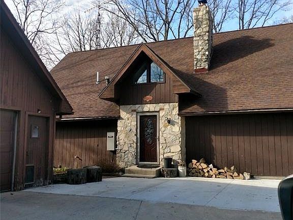 MOTIVATED OWNER/MOVING OUT OF STATE. Chalet style, one-of-a-kind home, on 11.424 acres of wooded acreage with pond.1st floor: Entrance w/mud room, lg. closets & laundry area, 2 bdrms., full bath(w/crawl entrance in closet) , lg. eat-in kit.& spectacular liv.rm. w/ floor to ceiling, wood-burning, stone fireplace & cathedral ceiling. Living room has two walk-out sliding doors & kitchen has one walk-out sliding door, all Anderson custom doors. Liv. rm.windows have six sets of custom-made blinds. Appliances include range/oven, refrigerator & dishwasher. Spiral staircase to master suite. Lg. bdrm. w/ private balcony & walk-in closet,full bath and loft area with fireplace & built-in wood shelves. Home has propane forced air heat & electric baseboard heat. A/C & whole house Generac generator(2015).All flooring, ceiling fans & baths, new in 2018.Original, one bdrm. "Bunk House" with full bath & kitchen, separate meters, for "Summer Fun". Barn, & 2 sheds plus stocked pond. Sump pump. A MUST SEE