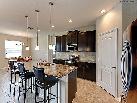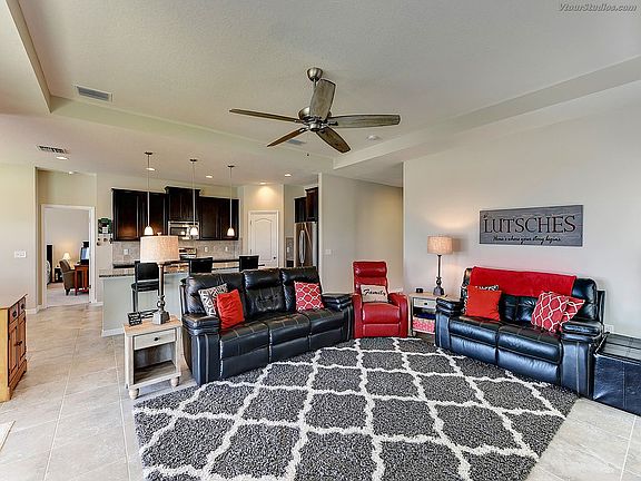 Don't wait to build! This family-friendly 4 bed, 3-1/2 bath with den home built in 2015 includes many upgrades & builder warranty! The “Camden” by DRH offers an open floorplan, multi-generation suite (perfect for in-laws), volume ceilings, split bedrooms including generous owner’s suite and “Jack & Jill” bedrooms, bonus/flex room w/ glass French doors for home office/play room and a 3-car garage. Many unique features contribute to the appeal of this home, including the custom bench & storage in “mudroom” entrance. Oversized ceramic tile flooring, tray ceilings, oversized closets & upgraded blinds emphasize the beauty of the home. Gorgeous kitchen has granite countertops, 42" premium cabinets (stacked & staggered w/ crown molding), stainless appliances, tile backsplash, walk-in closet pantry and breakfast bar. The owner’s suite is the perfect retreat with garden soaker tub, walk-in, glass-enclosed shower stall and dual sinks. Located on a premier lot in the gated neighborhood of Del Tierra, just steps away from the incredible community amenities that include a clubhouse, pool, sports field and playground. With no CDD fees and low HOA, it’s the perfect combination of comfort & convenience. Only minutes from shopping, dining, and major roads like I-75 and SR-64, you can be close to everything while also feeling miles away from it all in this family-friendly community near LWR. Family loves this home but are being relocated! (Fire Pit has been removed and re-sodded)