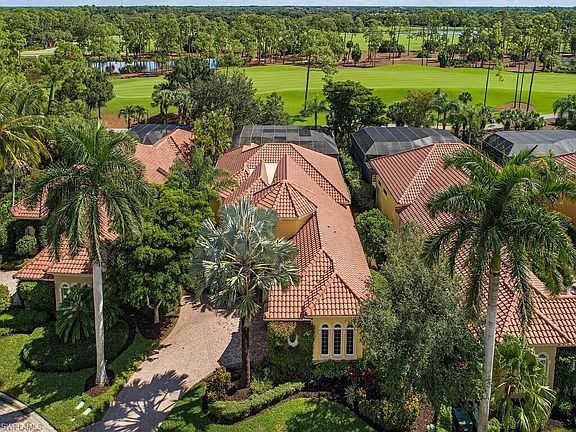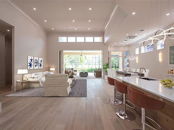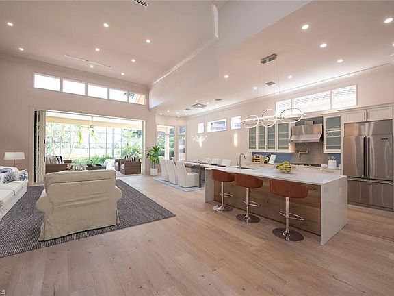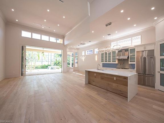 Open, airy and basked in light, this sparkling clean villa home has been recently remodeled and embodies true Naples living in paradise. This coveted location offers a lush expanse of views of the 10th fairway and is just a short walk to the award-winning amenities of the Club at Mediterra. An open floor plan ensures an easy flow between the living room, dining room, kitchen, and outdoor space - ideal for entertaining. The brand-new kitchen has been designed with a quartz waterfall island, custom cabinetry and high end stainless appliances including Viking, Wolf and Thor. The beautiful master suite has a large walk-in closet, free standing soaking tub and doors that lead out to the lanai and pool. The guest suites are ample in size with bathrooms remodeled in exquisite style with all new fixtures. A delightful den with private bathroom can be used as a home office or an intimate gathering space. The spacious backyard oasis features a covered lanai, a newly refinished pool and spa and sweeping golf course views. Photos virtually staged.