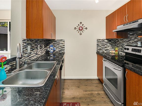 Masterfully updated. Newer kitchen cabinets & appliance, granite & backsplash. hardwood floors. Master with a private bathroom. This unit have a very private patio with Two storage for your toys. Cats & Dogs Allow. Two parking spaces. Laundry room include. 2 bathrooms tile floors upgrade vanities. Have a big club house for your parties with a big pool, hat tub, tanning bed, gym, and party room with seating for all your friends! Minutes from Alderwood Mall, Costco and Kona Kitchen I5 & 405 exit.