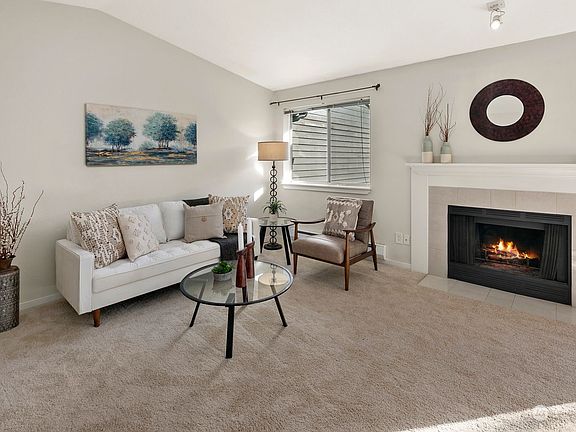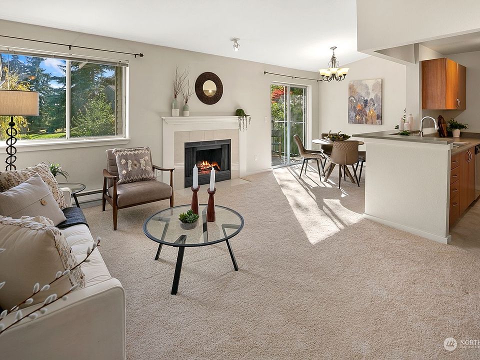 Elevate your lifestyle w/ this top-floor vaulted ceiling condo w/ 2 parking spots, showcasing complex's finest views of the private park and pool. Bask in natural light w/ balcony and excellent sun exposure, all while enjoying the wood-burning fireplace. The kitchen features cherry cabinets and stainless-steel appliances, adding elegance to your daily life. En-suite W/D. New carpet. Commuters will find a dream in sought-after Brio Condo complex, just minutes from Alderwood Mall, the freeway, Lynnwood Park, and the future Lynnwood light rail station (arriving in 2024). The community clubhouse is your sanctuary, offering an outdoor swimming pool, hot tub, exercise room, spacious lounging area, an outdoor patio w/ BBQ facility, and much more!