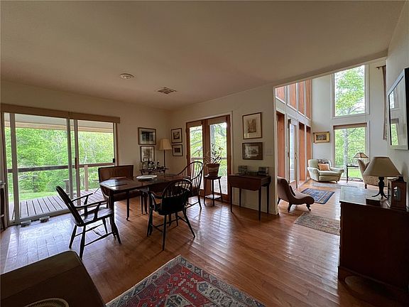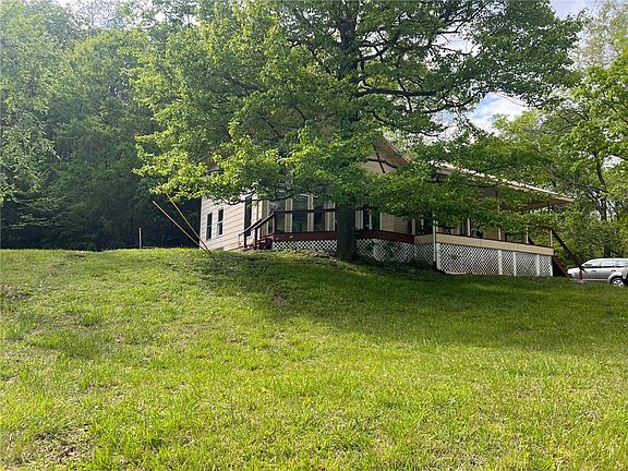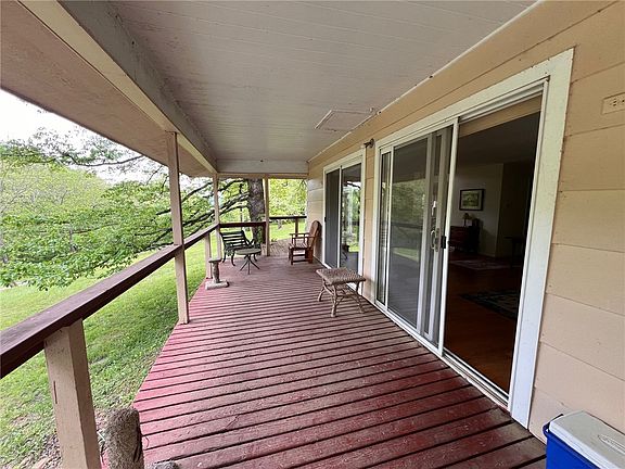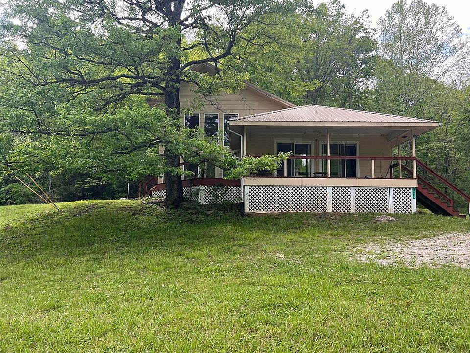 Escape to your own private oasis w/this contemporary home nestled on approx. 60ac in the Ozark Mountains! Tucked away on a secluded dead-end road, you will find stunning scenery w/a wet weather creek running alongside of the road & home & plenty of woods to explore. Enjoy watching birds, deer & other wildlife in their natural habitat right out your front door on a covered deck that wraps around to the living rm. Mountain lions & bear have been known to cross thru the property making it a paradise for hunting enthusiasts. There is also a cleared area perfect for a garden or workshop. Originally a 2BD 1 BA home w/a small kitchen, owner added a living rm w/floor-to-ceiling windows that flood the space w/natural light & offer peaceful views of the property. Wood stairs lead to an upstairs loft (primary BD) w/a full bath. A Bridge Wall Cabinet separates the kitchen from the dining rm/den which helps keeps an open feel. Beautiful wood floors thru out main areas, 2 sliding doors & 2 other doors leading to the deck.