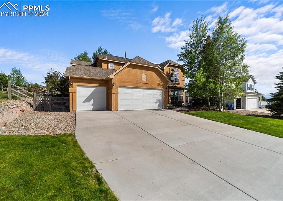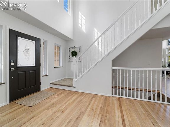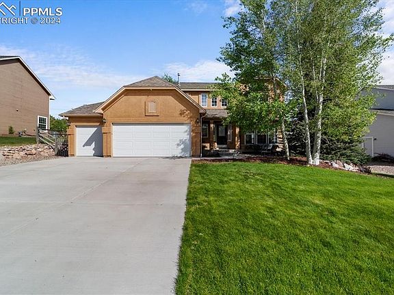Indulge in luxury living within Gleneagle's sought-after community with this captivating 4-bedroom + office/library, 4-bathroom, 3-car garage residence spanning over 3400 square feet. This home has been meticulously renewed, refreshed, and upgraded, promising a lifestyle of unparalleled comfort and delight.Upon entry, you will be greeted by soaring ceilings and an abundance of natural light, creating an inviting ambiance throughout. Newly refinished wood floors adorn the main level, complementing the custom kitchen equipped with stainless steel appliances. Entertaining is effortless in this home which boasts a bright and lovely separate dining room and formal living room area, while the family room captivates with its grand, vaulted ceilings, abundant sunlight streaming through countless windows, and a cozy fireplace, creating a stunning sanctuary where cherished moments are shared amidst an ambiance of warmth and grandeur. The basement unveils a delightful haven that includes another spacious living area with brand new flooring, a large bedroom, an office with french doors and built-in bookshelves, and full bathroom. Journey upstairs to discover an expansive primary suite featuring French doors leading to a rejuvenated 5-piece bathroom. Two additional ample bedrooms and another full bathroom complete the upper level. Outside, the meticulously maintained yards boast mature trees and lush greenery, including a beautiful patio area, as well as a fantastic firepit area with magnificent Pike’s Peak views! Embrace the epitome of luxury living in this Gleneagle gem—schedule your showing today and make this exceptional residence your own.