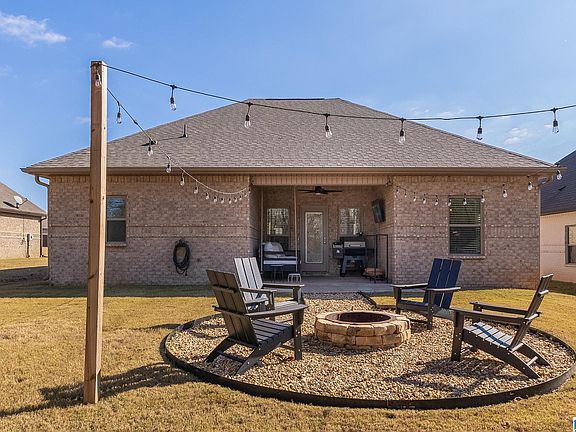 First time on the market: welcome to your dream home! This 3 bedroom, 2 bath home is located in Harvest's sought after Copper Creek subdivision. Built in 2021, this home boasts a sleek and modern design. The large windows and open-concept layout creates a bright and inviting atmosphere. There are engineered hardwood floors throughout, neutral paint colors, and plenty of storage space. The kitchen is equipped with stainless steel appliances, quartz countertops, and a walk-in pantry. The primary bedroom is very spacious, has a large walk in closet, and an en-suite bathroom with double vanities, a large shower, and soaking tub. Down the hall, you will find two additional bedrooms and another full size bathroom. The additional bedrooms are the perfect size for a growing family, guests, or even an office. Out back, you have the perfect setup: a back porch, a fire pit, and a bed swing. You do not want to miss this one - schedule a showing today!