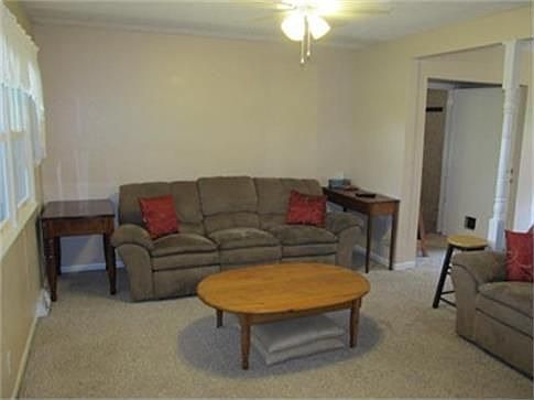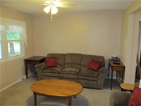 Cute ranch style just west of Nevada that has freshly painted interior, all new outside light fixtures, two new ceiling fans, new chandelier in dining room. Home has covered front porch, back patio, and four car attached garage. Comes with one year Home Warranty. Large 17' x 23' studio room could make a great master suite or some other use - quilt shop?? Appliances: Range, Refrigerator, Dishwasher, Washer, Dryer