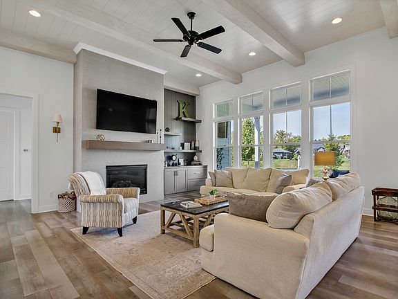 Spectacular 6bd/5ba, custom Woodstock-built home in Grassy Branch at Bridgewater! Main-level Primary suite offers loads of windows, generous walk-in closet w/ custom built-ins, and on-suite bath with oversized walk-in shower, dual vanities, free-standing soaker tub, and beautiful custom tile work. The rest of the main level features an office/den, 2nd bedroom & full bath, an open Great Room w/ coffered ceilings, fireplace & built-ins, kitchen, & breakfast nook. Kitchen is stunning with custom cabinetry, separate island w/ stained cabinetry, luxury Kitchenaid appliances, including 2nd built-in oven. Upstairs boasts 2 more bedrooms w/ 2 full baths (one on-suite), and a loft area. Basement includes full wet-bar, entertaining area, 2nd family room, 2 more bedrooms plus a full bath, and a large storage/mechanical area. Out back, enjoy the large covered patio with built-in surround sound, extended patio and built-in gas fireplace. 4 car garage to store all of the fun toys. Too many upgrades to include. This home offers a fantastic opportunity to enjoy the lifestyle of living in Bridgewater!
