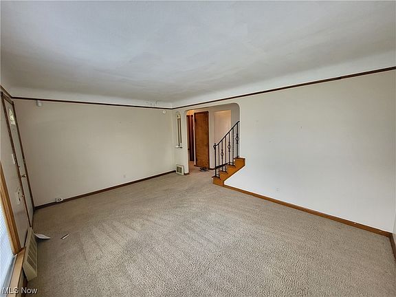 Opportunity awaits for you to put your personal touches on this 3 bedroom bungalow with a freshly painted exterior, newer windows and a 2 car detached garage. Plenty of room in the living room with an oversized picture window affording good natural light. The kitchen has updated cabinets and an eating area. There are two bedrooms and a full bath on the main level and great space on the second floor for the primary bedroom. The large basement has a recreation room, and plenty of room for storage. The unfinished portion has a commode, shower and laundry area. One year home warranty included. Great location - so convenient to shopping and freeways. Maple Hts POS has been done and seller has made many repairs but some items are left for buyer to assume. Appliances have not been used recently. House is being sold “as is”.