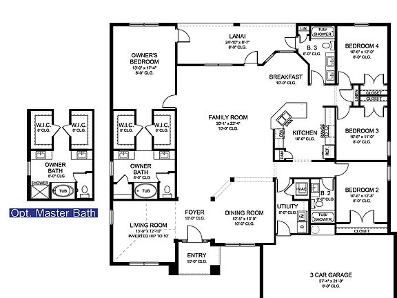 4/3/3 2508 sqft Features include: 4/3/3 2508 sqft Features include: 3 car garage, Tray ceiling w/crown molding in master bedroom, Separate tile shower w/light in master bath, Beveled edge on HD countertops, Stainless steel upgrade, Rear door mini blinds, Interior double doors w/o glass in living room, Tile hallway from bedroom 2 to family room