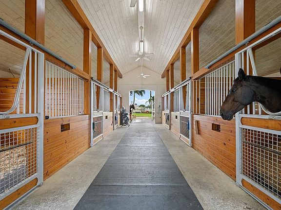 Well located in gated Palm Beach Point. Charming 3/2 home with 2 car garage, screened patio, split bedroom plan, vaulted ceilings, SS appliances and ceramic tile throughout. Barn features 6 12x12 stalls , air conditioned tack room , fly spray system, washer /dryer, large sand ring and 8 paddocks . RO water treatment system services both house and barn. Property sits on a lushly landscaped 5 acre lot in Palm Beach Point with close proximity to the Palm Beach International Equestrian Center. House and barn are neat and clean and nicely updated. A rare find!