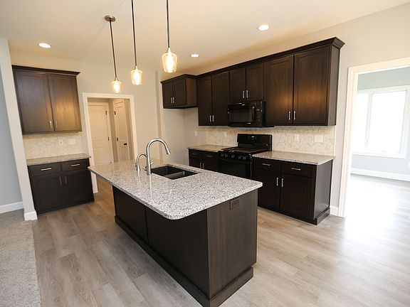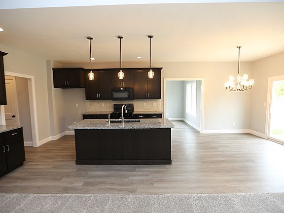 Villa home in Lakes of Leo Creek! This home has an open floorplan with a custom kitchen complete with an island, breakfast bar, 6x4 pantry, granite countertops, tile backsplash and black gas range, dishwasher and microwave. The nook has a gliding door opening to the 14x12 patio. Just off the kitchen is a sunroom. The large great room has a cathedral ceiling and gas fireplace with a brick surround. The owner's suite is spacious and has a luxurious bathroom with a double sink and porcelain tile shower. Other features of this home include: larger tub/shower in main bath, cabinetry above the washer and dryer, utility sink in garage, wider pull down attic stairs, extra 10 x 10 storage area in garage plus the garage is deeper.