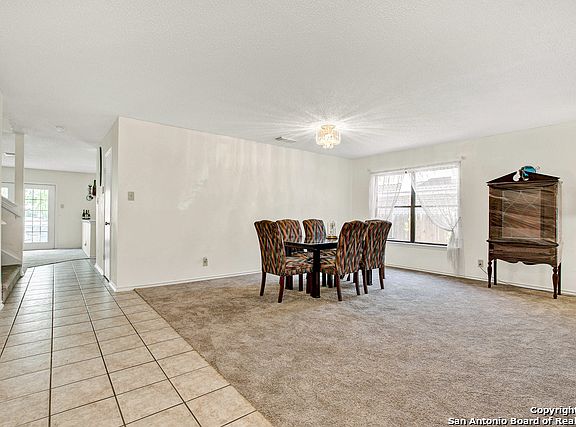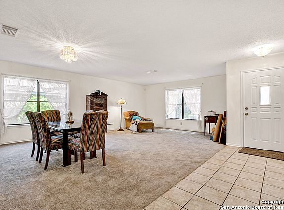 This open floor plan with two huge living areas is a must see! This home is perfect for large family gatherings and parties with its very large dining room and common areas. Eat in kitchen has ample counter and cabinet space with walk in pantry and laundry room. Giant master suite and master bath with large walk in closet. Two sets of French doors leads to the backyard complete with covered patio, hot tub, shed, mature shade trees, beautiful plants and shrubs. High fences with no neighbors behind provides plenty of privacy! New flooring in all bathrooms and new carpet in living areas. Recent new roof and A/C. Convenient location provides an easy commute to Randolph AFB, Fort Sam Houston, San Antonio International Airport, restaurants and shopping. Open House this Saturday and Sunday September 12th & 13th from 3:00-6:00 on both days. Come by and take a look.