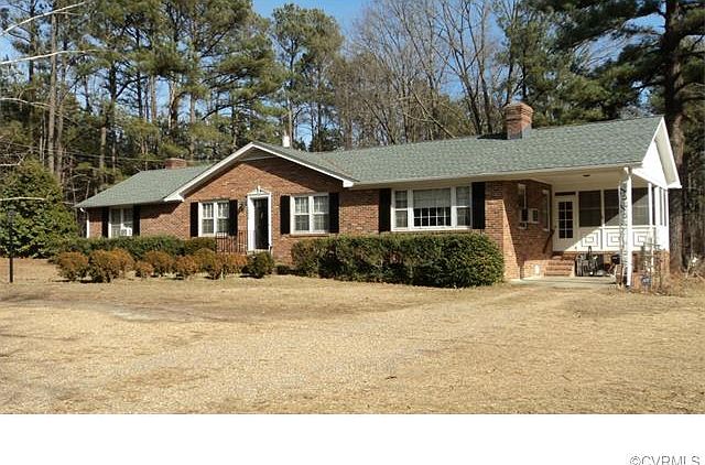 LOVELY BRICK RANCHER ON 2 ACRES IN PRINCE GEORGE! This 3 bedroom and 2 full bath home features beautiful woodwork and hardwood flooring in the family room and dining room. There are two fireplaces, one in the family room and one in the master bedroom. There is an eat-in kitchen, enclosed porch, carport, and circular drive. The original part of the house was build in 1920. It was renovated in the 1960's when 2 wings were added and the outside was bricked. It is a great place.