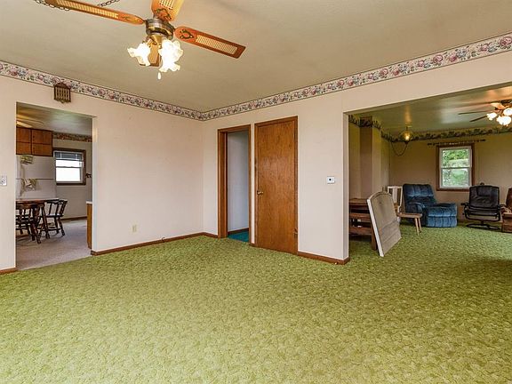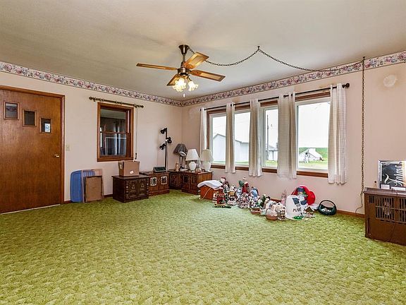 This story and a half home rests on approximately 4 acres with multiple outbuildings including a 23x60 machine shed, 20x20 heated shop, grain bins, barn, and 2 car garage. The home features large rooms throughout, a formal dining room, plus eat-in kitchen with pantry, 4 bedrooms, 1 full bath on the main floor, 1 half bath upstairs (with space to possibly convert to a 2nd full bath, updated service panel, and most windows have been updated as well. Don't miss out Call for a private showing today.