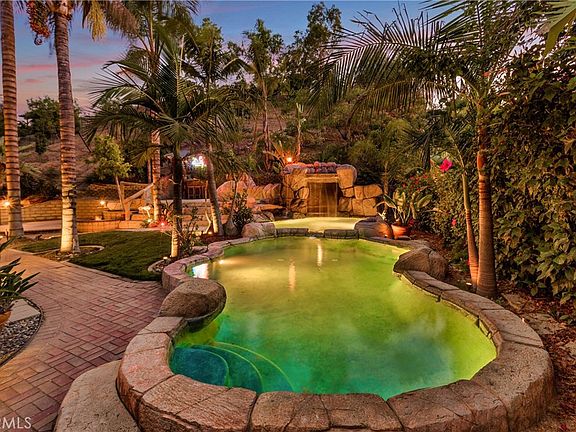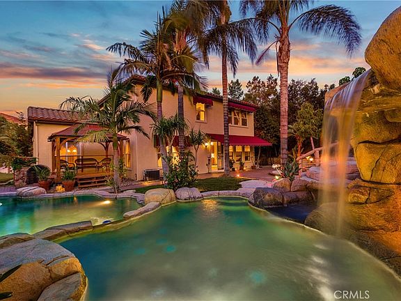 Seller says LET'S MAKE A DEAL! Price reduced for a quick sell, and this is the Best Bang for your buck in the City of Norco that has a One-of-a-Kind backyard that will make you feel like you are on vacation every single day. No expense has been spared in this resort style backyard that has an oversize rock spa that cascades under a bridge walkway into a plunge pool with water continuing to the approximately five foot deep play pool with pebble tech finishes, dry grotto with additional seating, built-in speakers, mesmerizing waterfall, backyard lighting illuminates in various colors to create an enchanting ambiance while entertaining at night, bar area with plenty of space for hosting events, additional concrete space near the fire pit that could be used as a stage for live bands or a DJ, separate gazebo area, lush tropical landscaping, RV Access and parking. This three bedroom, three full bathrooms, with a downstairs office that could be turned into a fourth bedroom, upstairs loft area that could be a game room or a fifth bedroom, three car attached garage gives you approximately 3397 of living space that sits on a 1/2-acre lot. As you enter the home, you are greeted by a foyer with a tall ceiling, brand new modern gray and white tile flooring throughout the first level. This open floor plan seamlessly connects to the formal living room with crown molding, dining room that can accommodate large family functions, butler's pantry with additional counter space and cabinets for storage. Spacious kitchen with ample amount of space, lots of cabinets, brand new dishwasher, kitchen island faces the family room with built-in media cabinet and decorative tile fireplace with wood mantle. Brand new carpet in most of the living areas downstairs, and larger baseboards throughout. Second level has a built-in desk, large loft area, attic access with drop down ladder in hallway, guest bathroom with dual sinks, walk-in closets in both bedrooms' which is a hard find, huge primary bedroom with crown molding, oval soaking tub, standing shower, vanity area, dual sinks, and walk in closet that can accommodate a large wardrobe in primary bathroom. Everything is at your fingertips with this location, Get your caffeine fix at Starbucks located minutes away, easy 15 and 91 freeway access, near Costco, restaurants, and the Hidden Valley Golf Course. Act now and don't miss out on this opportunity to make a deal.