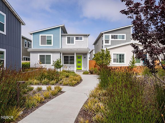 Stylish and contemporary home at the heart of the Five Cities local beach vibe. Leave the car at home as all desired amenities are a short distance away. Built new in 2017, this two story, 3 bedroom, 2.5 bath, 1820 SF home meets modern expectations of floor plan, space, and design. Neutral-toned plank-style ceramic tile flooring throughout the open concept living area with a defined eating space full of light, a kitchen island with farm-style sink and breakfast bar, quartz countertops and glass tile backsplash, stainless appliances, and recessed lighting. There are double sliding glass doors that incorporate the living space with the lovely side paver patio that provides fresh air and room for an herb garden. A well placed powder room tucked away under the stair completes the downstairs. Upstairs bedrooms offer privacy and the owner's suite includes a dual sink vanity, separate tiled shower and soaking tub, walk-in closet, and a discrete enclosed water closet. The Trillum @ Grand community is laid out in a rectangular design centering on a courtyard with a covered communal eating space for shared use, well-placed porches, and guest parking at the perimeter. A variety of restaurants from five star to fast food, grocery and drug stores, as well as banking are all right there. Features include two car garage with trash receptacle area, upstairs laundry, remote operated ceiling fans in each bedroom, tankless water heater, and low $60 monthly HOA fees.