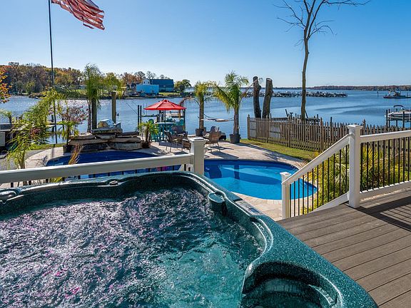 Great price drop! No HOA and lot big enough for an RV in addition to your boat for a dry dock. Incredible waterfront opportunity for this entertainer's delight. Three years old with virtually no wear and tear /looks new. Imagine a life of leisure all on one floor with expansive views of the water. Covered porch overlooking the water to catch those summer breezes plus a multi person hot tub. Full solid surface patio with heated inground saltwater pool. New pier to dock that boat and then set sail to explore all that is Back River to Hart Miller Island and the Bay beyond. Did I mention Tiki Lees across the river? Home has 10'+ ceilings and open concept living room, dining and kitchen. Bedrooms are en suite. Stone front fireplace. Cook's kitchen with all the bells and whistles. Basement could be an in-law suite - equipped with a full recreation room, bath and potential bedroom. All of this and then the view of a lifetime. With a home like this? You can create your own Margaritaville. You won't care about a blown out flip flop, stepping on a pop top or a lost shaker of salt. You'll be too relaxed. Home meets vacation. Make this one yours.