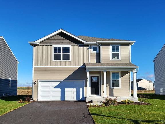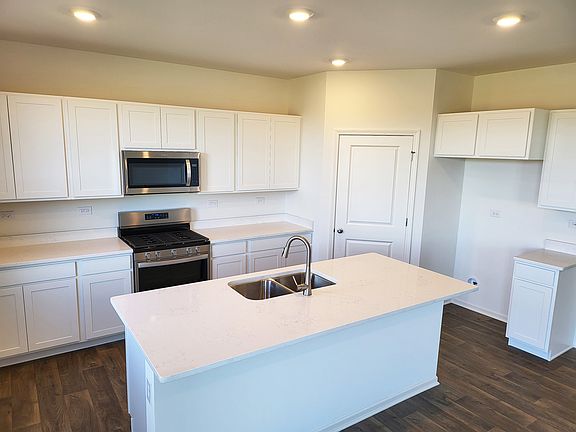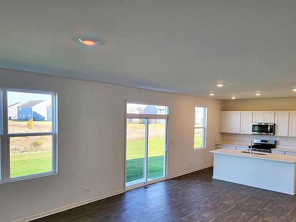 Move in ready! Awesome homesite backs to pond at clubhouse community in Pingree Grove! The Holcombe is the perfect combination of open concept living, modern finishes, and Smart Home Technology with energy efficient features throughout! This home offers 4 large bedrooms, 2.5 bathrooms, study off the front entrance, 9-foot ceilings on the first floor, full basement and a 2-car garage. Walking in, you are welcomed by the study, which can be used as a sitting room or an office area. The kitchen is beautifully appointed with white cabinets, quartz countertops, LED lighting and stainless steel appliances. An abundance of storage space with large island and generous sized pantry. This inviting open concept floor plan flows effortlessly to the family room, perfect for entertaining. Welcoming you upstairs is the large primary bedroom suite with a walk-in closet, ceiling fan rough in, and plush carpet. Primary bath combines design and functionality with dual comfort height vanity, oversized decorator mirror, designer plumbing fixture and walk in shower. The laundry room and secondary bath are conveniently located on the second floor right next to the additional bedrooms. Professional landscaping with fully sodded yard. District 300 schools! Monthly assessment includes access to fitness center, pool, indoor basketball court, outdoor baseball fields, parks, walking trails and ponds. All Chicago homes include our America's Smart Home Technology which allows you to monitor and control your home from the comfort of your sofa or from 500 miles away and connects to your home with your smartphone, tablet or computer. Home life can be hands-free. It's never been easier to settle into new routine. Set the scene with your voice, from your phone, through the Qolsys panel which you can schedule it and forget it. Your home will always await you with your personalized settings. Our priority is to make sure you have the right smart home system to grow with you. Our homes speak to Bluetooth, Wi-Fi, Z-Wave and cellular devices so you can sync with almost any smart device. Builder Warranty 1-2-10. Interior photos of model home and actual home. Exterior photo of actual home.