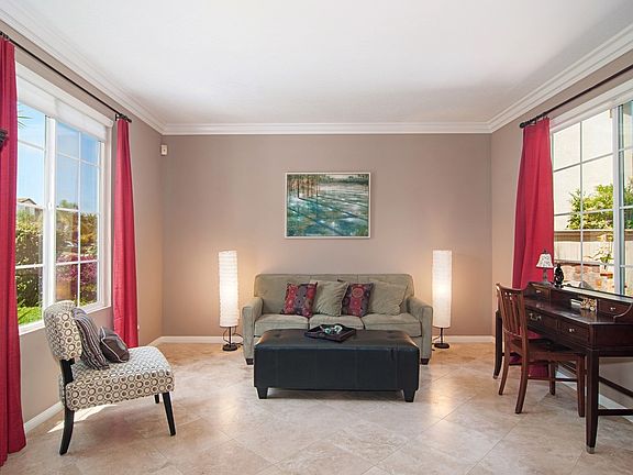 Beautiful home in lovely Cantamar ocean view from large upstairs open loft area and bedroom balcony light and bright open floor plan with high ceilings patio courtyard with fountain off dining roombuilt-in media center and fireplace in family room spacious kitchen with lots of storage first floor bedroom/office and full bath in-ground spa in the private yard. Crown moulding wood-look flooring invisible screens water softener a year oldwasher/dryer and kitchen refrigerator negotiable