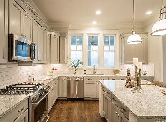 New Construction Home by Saussy Burbank . 0pen floor-plan w/ 4 Bedrooms, 4.5 baths, attached garage! All selections by interior designer including gourmet kitchen with granite, GE Stainless gas range/cooktop, island, walk-in pantry, 42" maple cabinets. Main Level has 3 1/4" oak floors, 10 ft ceilings, extensive molding, and built-in cabinetry around gas fireplace. Second floor master bedroom with large walk-in closet, double vanity with granite, garden tub, tile floors. Walkable location!