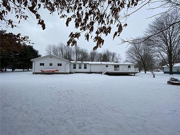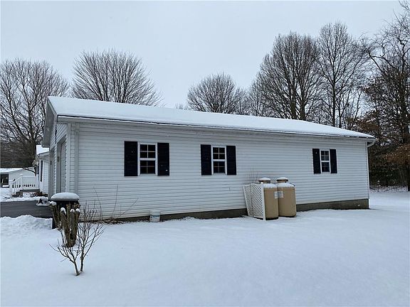 Fantastic setting on a quiet dead end St, not far from Pymatuning lake! The Spacious family room with vaulted ceilings and lots of natural lighting throughout, opens into the great layout offered by this home. The paved driveway leads up to the generously sized attached garage with two extra rooms behind it offering endless potential.