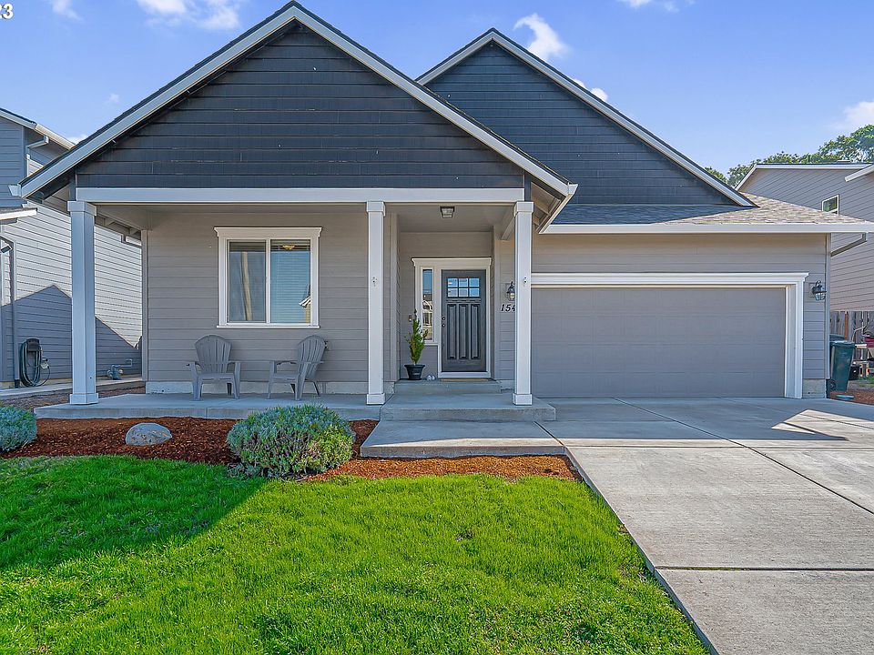 1542 N Lincoln Street is an extremely well-kept single-level home with a cozy, open-concept floor plan within a quiet, walkable neighborhood. Upon stepping into this home you will notice the craftsman trim around the windows, and doors as well as laminate flooring throughout the main living area (carpet in the bedrooms). The main room is a combination of the kitchen, dining space, and living area with tall, vaulted ceilings and great natural light. This space is extremely welcoming, is ideal for hosting/entertaining, and makes Lincoln Street feel much larger than 1,453 sf. The kitchen has beautiful knotty alder cabinets, tile countertops, a stainless steel appliance package, a pantry, and an expansive island that can comfortably seat four. Any person who enjoys cooking or baking will appreciate the amount the counter space, and cabinet storage this kitchen offers. Next to the kitchen is a spacious dining nook which has a sliding door leading to the back patio. Due to the lack of someone neighboring the back property line and established greenery, you will enjoy added privacy in the backyard. Back inside, the master suite is spacious and feels even larger due to the vaulted ceilings and wide window looking out to the backyard. A walk-in closet is located within the ensuite bathroom with double sinks, and a separate area housing the step-in shower. Two more spacious bedrooms, a full bathroom, and a dedicated laundry room fill out the interior of this home. As for the location, you are minutes away from incredible wineries such as Stoller Vineyards, and Domaine Serene, and a short drive from all that McMinnville has to offer. You will find green agricultural land in every direction! For the kids, a community park is a short walk down the street, and Wascher Elementary School is a few minutes away.