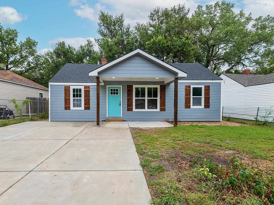 Welcome to this completely remodeled ranch home near Wichita State University! Featuring 3 bedrooms and 2 bathrooms, this property combines comfort and convenience. The home was completely updated with new roof, siding, windows, hvac, updated plumbing and electrical. Inside everything was redone from the kitchen to the bathrooms and and all new floors throughout. The spacious living area is filled with natural light from large windows and flows seamlessly into the dining room and kitchen. The kitchen offers all new cabinets and butcher block countertops and tile backsplash. The primary bedroom includes a private en-suite bathroom with a tile shower. Outside, enjoy a fenced backyard with space for relaxation or play. Whether you’re a first-time homebuyer or seeking an investment opportunity, this home is an excellent choice in a prime location near shopping, dining, and WSU.