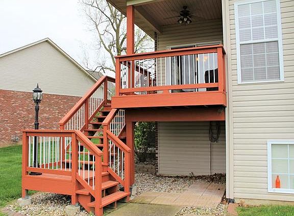 New carpet being put in. You will love the low maintenance lifestyle that this attached villa provides. Located on the north end of Waterloo, this 2 bed, 3 bath home features an open floor plan, formal dining room and finished, lookout basement. The entry foyer has gleaming wood floors and leads to the living room w/gas, brick fp surrounded by windows. This leads to the eat-in kitchen w/sliding doors out to the covered deck and lovely yard. The kitchen has a breakfast bar, newer black appliances, & upgraded cabinetry w/crown molding. The master offers a walk-in closet, separate garden tub & shower, & large vanity. There is an office on the main level & a laundry room leading to the 2 garage. The lower level features a bedroom & bath, a nice sized family room & large rec room w/wet bar. The back yard leads to an open field for a relaxing evening spent on the deck watching the deer & other wildlife. There is still plenty of storage w/built-in shelves in the bsmt.