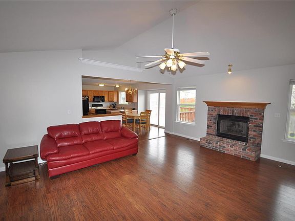 3 bedroom 3 bathroom ranch style home with attached 2 car garage and fenced backyard. Vaulted ceilings in great room on main floor, gas fireplace and newer flooring. Open floor plan with kitchen, breakfast room with newer flooring. Sliding glass door off breakfast room to deck space and bonus patio. Main floor laundry. Master bedroom has vaulted ceilings, master bathroom with separate tub and shower, and spacious walk in closet. 2 additional bedrooms on main floor and full bathroom in the hall. The lower level is finished with a kitchenette, with newer cabinets and countertops, newer flooring throughout lower level. Great recreation and family room space. 4th possible bedroom and bonus office/den finished. 3rd full bathroom in lower level. Great O Fallon location. This won't last long.