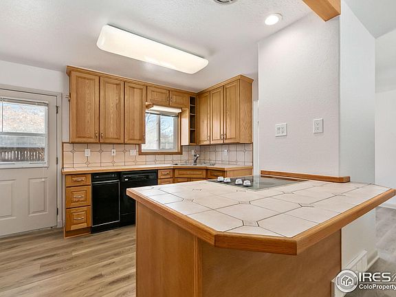 This classic style corner lot home on the southern side of Longmont enjoys easy access to Niwot, Gunbarrel, and Boulder! Welcome guests into the large living room with luxury vinyl plank flooring and an open flow to the dining area and open kitchen. Floor to ceiling crown molded cabinets, a pantry, tiled back splash and peninsula counter with glass cook top and seating make the kitchen an inviting space. A few steps down you'll find the family room with warm wood paneling and a brick fireplace. The laundry room and a half bath are just down the hall. Retreat to the bedrooms upstairs when it's time to recharge. The primary bedroom offers a private attached bathroom with stall shower. A full bathroom with dual sinks is shared by the remaining two bedrooms. An unfinished basement space provides a large workshop area, a storage room, and utility room. This large corner lot offers a covered front porch and a back patio surrounded by mature landscaping featuring a beautiful blue spruce. The metal shed keeps yard equipment squared away. A double bay attached 2-car garage and extended driveway allow for additional storage and offstreet parking. No HOA!