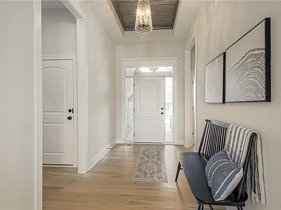 Nestled on a spacious corner lot, this charming reverse 1.5 story home by award-winning builder, Inspired Homes, offers the perfect blend of comfort and convenience. Boasting 10 ft ceilings, 4 beds/3 baths spread across 2619 sq ft, it exudes warmth and elegance with real 4-inch white oak hardwood floors plus 2-inch white faux wood blinds throughout. Your manageable yard allows for easy maintenance, while the proximity to golf courses, parks, grocery stores, and shopping destinations ensures every need is just a stone's throw away. Whether relaxing indoors or exploring the vibrant, active surroundings, this home promises a lifestyle of ease and enjoyment. Pryor Ridge Community offers its homeowners a sparkling jr-competition sized pool, playground, basketball & pickleball courts, off-leash dog park, open green space andwalking trails.