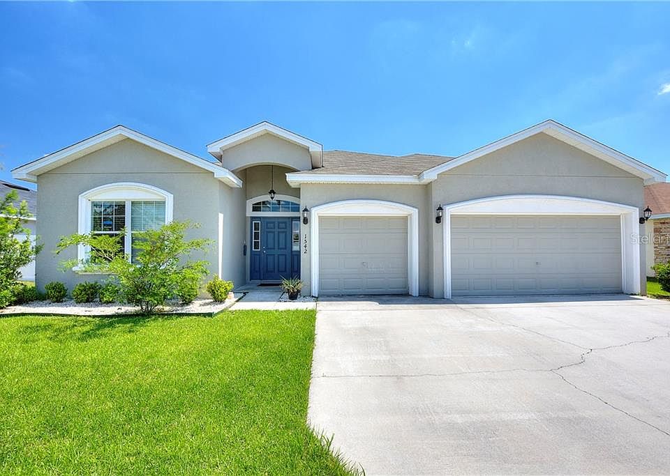 Welcome to 1542 Shorewood Dr, located in Auburndale FL off Old Berkley Rd, which is down the street from Berkley Charter Schools. Conveniently located near I4, perfect for anyone commuting to work in Orlando, Tampa or Lakeland. The home features 4 bedrooms and 3 full bathrooms, along with a separate den/office/study. The triple split bedroom floor plan offers unique space for any size family. Tons of natural light will be found in the open concept kitchen that features granite countertops, a huge breakfast bar, wood cabinetry and all appliances. Off the family room and master bedroom is a large screened in lanai that leads to the PVC privacy fenced in backyard. The oversized three car garage offers tons of space to park multiple vehicles inside. This is a must see and won't last long!!
