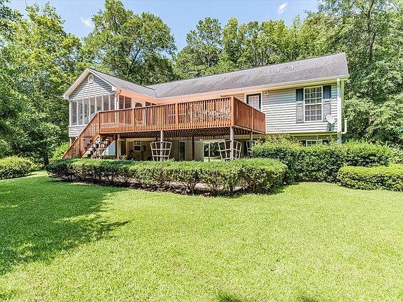 A peaceful retreat yet so close to it all! This custom home is surrounded by nature on 6.2 acres bordering Stevens Creek. The home features 3 bedrooms, 2.5 baths, large open floor plan, 26 x 22 attached workshop, double carport, 15 x 25 deck, and a 12 x 14 screened porch. When you enter this home you are greeted by a welcoming foyer and access to large laundry room with utility sink. Just up a few steps are the 2nd and 3rd guest bedrooms that share a bath with private vanity areas. A few more steps up to the main living area is the perfect space for large gatherings or entertaining. Spacious kitchen features plenty of counter space, cabinets, a pantry and is surrounded by the family and dining areas. The family area is large enough to accommodate multiple seating areas, with one area currently boasting a gaming table, and opens to the back deck which leads to a screen porch. The dining area includes custom cabinets perfect for a coffee bar! The primary bedroom is located just off the living room and also leads to the spacious back deck. A double vanity, soaking tub, walk-in shower and oversized walk-in closet complete this primary suite. The half bath is tucked away off the main living area and is perfect for guests. Easy access walk-up attic is located just off the kitchen area and floored for extra storage. The grounds feature storage building, detached carport area, mature trees for privacy, and a cleared area perfect for gardening.
