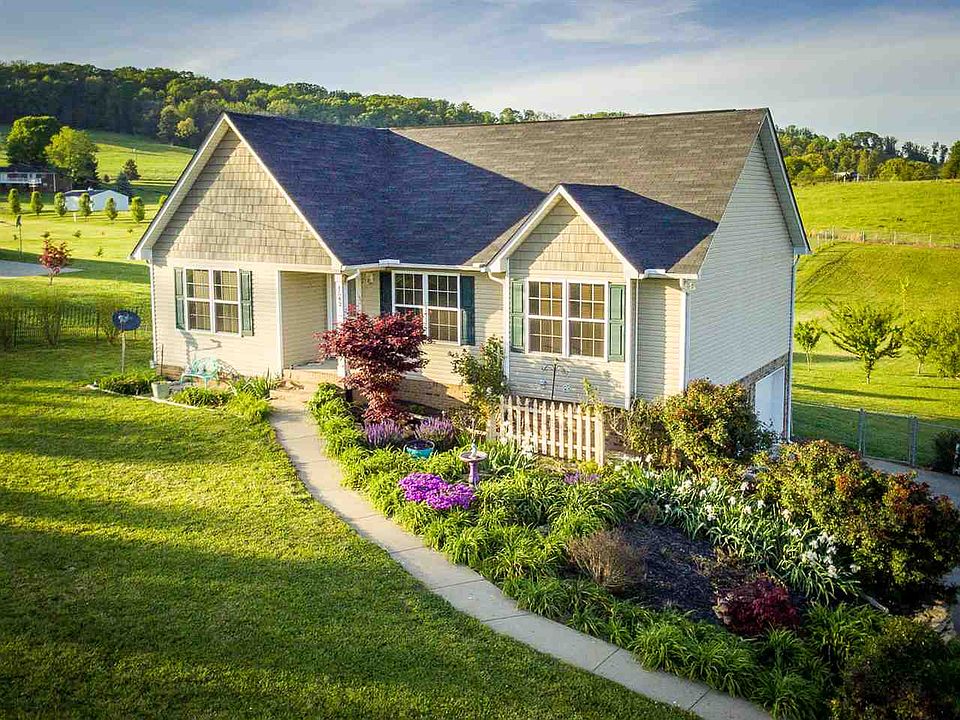 Cottage-Looking, A Landscape Beauty, One Owner, 2012 Basement Ranch on approx. 1 acre, Move-In Ready, all main level living, Open Floor Plan, Split Bedroom Design, 3 BR, 2 BA. Master Bedroom with walk-in closet; Master Bath with double vanity & linen closet. New Built-In Microwave, New Carpet, Custom Wood Blinds Stay, All Appliances including W/D Stay. This home features: Year-Round perennials include day lilies, roses, crepe myrtles, rose of sharon & more; fruit trees in back include peach, plum, pear, cherry & pecan; Back yard fenced with custom built covered gazebo & deck with 2-yr old hot tub that stays with good price; peaceful setting, great location, mountain views, multiple uses for room finished in basement plus storage room, 2-car basement garage. Home is less than 4 miles to I-81, near Hospital, Shopping & Dining while enjoying the peaceful countryside & mountain views. A Must See!