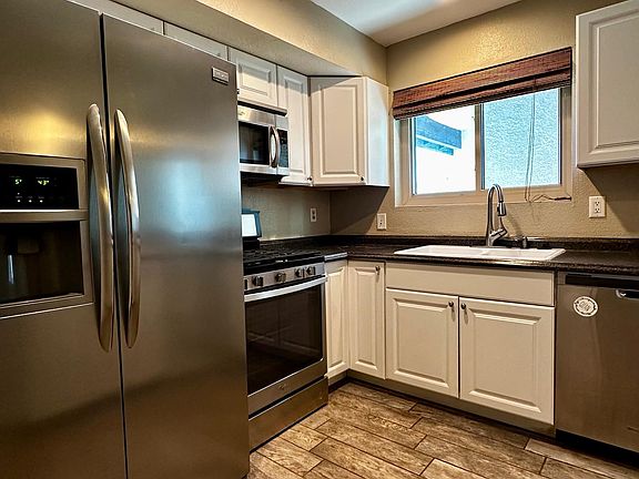 Townhouse located in Sunset Mesa. This 3-bedroom, 2-bathroom home offers 1,210 square feet of living space and a 2 car garage. The updated kitchen adds a modern touch and includes stainless steel appliances. Situated on a corner lot and within walking distance of the community pool. Less than a ten minute drive to the hospital and close to lots of shopping and restaurants.