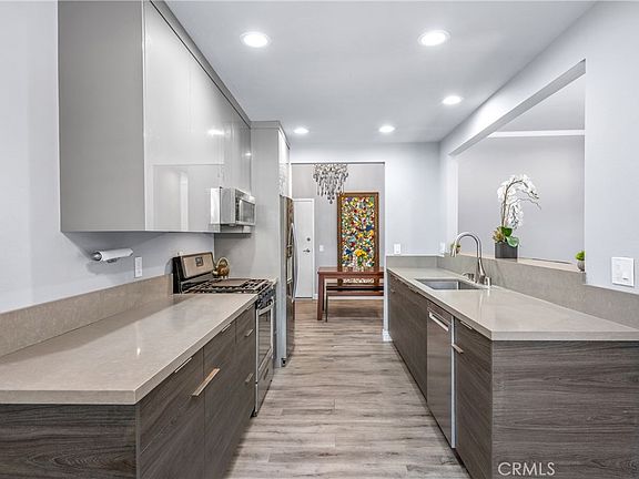 Are you looking for a beautifully remodeled three bedroom, two bathroom, two car attached garage condominium in the city of Fullerton? Well, look no further! This stunning condominium is located in the highly sought-after Water Gardens Community and offers unparalleled views of the large pool and lush green spaces. This completely remodeled home features a brand-new kitchen with custom-designed cabinets, elegant quartz countertops and modern appliances. The open floor plan seamlessly connects cooking with family time so you won’t miss a moment. The living room, with its cozy fireplace and dual sliders, opens to a patio offering the opportunity for indoor/outdoor living space. The three bedroom layout includes a main floor entry with a few steps up to the primary bedroom with ensuite bathroom as well as two additional spacious bedrooms. Raised ceilings in the kitchen and bathrooms enhance the airy feel of the home while double-paned windows ensure peace and quiet. The two bathrooms have been recently remodeled with high-end finishes and a spa-like feel. Modern recessed lighting and concealed cables maintain a sleek and uncluttered look throughout the home. Roller shades have been installed throughout the home, including blackout options in the bedrooms, as well as convenient battery-operated “high shades” for the unreachable windows adding to the home's sophistication. Descend the newly carpeted stairs to find a spacious two-car garage equipped with a brand-new smart motor, laundry hookups and a versatile bonus room. Every detail of this beautiful home has been meticulously updated, from the fresh paint to the thoughtful touches throughout. The Water Gardens Community offers three sparkling pools and spas as well as multiple lush green spaces. By the end of summer 2024, the community will be gated, enhancing security and exclusivity. Conveniently located near the 57 freeway, California State University Fullerton, Fullerton College, Fullerton Arboretum, shopping, dining and numerous city parks and trails. Grab your belongings and settle right into this turnkey home!