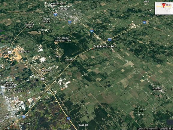 This 7.13 acre property is located just outside of Carthage MO in the Diamond School District. There is currently a 3 bedroom 2 bath home that is currently unlivable on the property. The roof, structure and foundation appear to be in good shape, if you wanted to fix it up. The property has been vacant for many years and the property has overgrown. This property used to be beautiful and can be again with a little work. Close to Carthage & Joplin possible 203k loan property Horses and cattle allowed