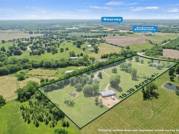 Location, Location, Location with horse facilities in Kearney, MO.!!!  Wonderful ranch style home on 10.58 +/- acres sits nicely back from the road at the "T" intersection of 162nd and Nation Rd! Interior features:  Brand new interior paint, private area with scenic views of sunsets and sunrise, gorgeous raised garden and zen sitting area, finished walk out basement, great property with lots of natural lighting, full, finished walkout basement with wet bar, extra room great for exercise or media room, basement bedroom and full bath, and master suite with whirlpool tub! Open living room with fireplace. Exterior features: deck off main level overlooking park like setting, Horse barn 32x64 with stalls and 2 car storage garage area with outbuilding, property has 3 rail white vinyl fencing along the road, vinyl coated 5 strand high tensile wire fencing, 12x16 lean too, stainless fridge, new dishwasher, good roof, new windows on the front and garage, active and vibrant fruit tree and vegetable garden for your enjoyment.  Come see it today!  Visit the property and go to the online offer website to register all offers are welcome and reviewed by the seller! Online Offers End: Wed. June 28th - 5:30pm Buyers premium and details on property available on the Online Offer website. Traditional old fashioned real estate offers are encouraged as well! Ignore MLS list price.