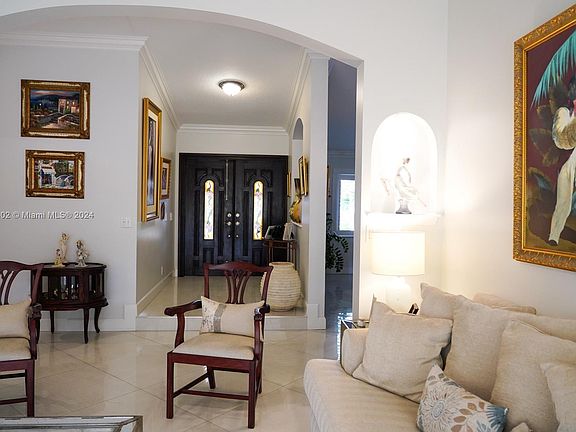 This delightful residence features 4 bedrooms, 2.5 baths, a pool, and garage, enhanced by impact windows and security cameras for utmost safety. The interior shines with newly updated floors and a master bathroom renovated less than 2 years ago. The exterior boasts manicured landscaping and high-end lighting, set in a serene family neighborhood. A highlight is the large, modern kitchen, perfect for family gatherings. This well-maintained home combines comfort with elegance, making it a true gem.