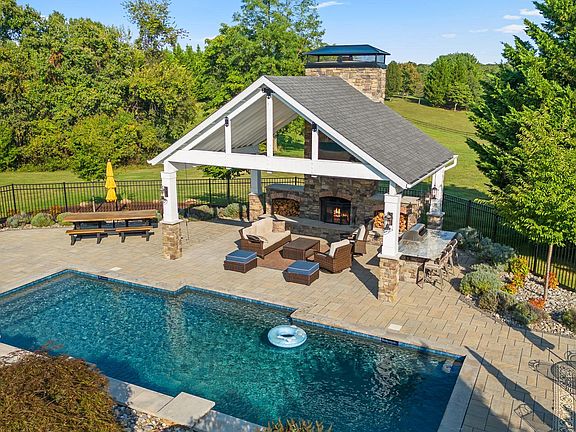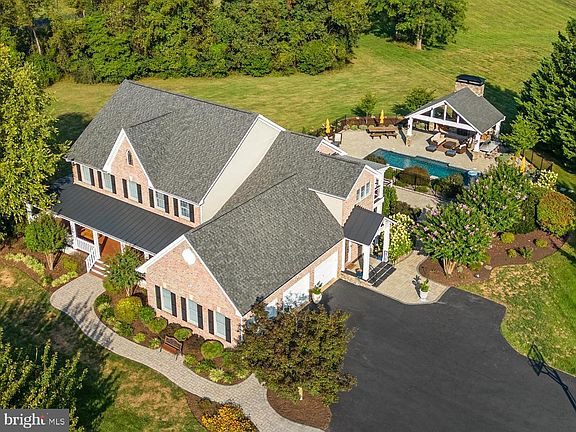 Yes- your dream home does exist...and it's right here nestled on 2.27 acres of serene landscape! This stunning all-brick Colonial home features 5 bedrooms, 4 full baths, and a half bath on the main level. If you're looking for a bit of privacy but don't want to be isolated, Branch Hill Estates is the perfect balance, offering an impressive neighborhood surrounded by the beautiful Ag Reserve. Custom-built home in 2001 with a newly built heated saltwater pool & pavilion (2022), creating a true resort-style retreat designed for relaxation and effortless entertaining. Just under 4600 finished sqft of living space, this property features a 3-car attached garage and outdoor amenities that'll blow you AWAY! Hardwood floors throughout the main and upper levels. This well-appointed home faces NW, providing sunrises in the back of the house and sunsets from the front porch. The center hall welcomes you to the living room with a gas fireplace and an elegant dining room. The gourmet kitchen features stainless steel appliances, granite countertops, a pantry, a gas range that vents outside, and a second oven in the island. It opens effortlessly to the family room with a cozy gas fireplace and a light-filled morning room wrapped in windows. From here, step out to the oversized Trex deck overlooking the expansive grounds—complete with a saltwater hot tub for year-round relaxation. Back inside, a private home office is thoughtfully tucked away at the rear of the home—perfect for work, study, or even as a main-level bedroom. The adjoining powder room has some connections in place for a shower, offering an option to convert it into a full bath. The mudroom includes laundry and a side entrance for everyday convenience. Ascend the wood staircase to the second level, where the primary suite awaits with picturesque views of the pool. Step out onto the private owner’s deck—complete with blinds—creating a peaceful escape. The ensuite bath offers a soaking tub, shower with a bench, and two walk-in closets. A hidden bonus is the expansive, ready-to-finish space above the garage, ideal for future customization. The versatile fifth bedroom connects to both the hall and the primary suite, making it perfect as a nursery, second office, project room, or even a dream walk-in closet. Three additional generously-sized bedrooms with a hall full bath and a Jack & Jill style bath between the 3rd & 4th bedroom. Yes- 3 full baths upstairs. Downstairs, the walkout daylight basement features a rec room and full bath, perfect for guests or a quick rinse off after a swim. Plus a huge, spacious workshop/gym and tons of storage! Just beyond the doors, your backyard oasis unfolds with a 25,000-gallon saltwater pool and pavilion with landscape lighting, offering endless fun and relaxation throughout the day and night! For added peace of mind, the sellers recently tested the well water (May 2025), radon test completed (May 2025), and the septic system was inspected and pumped (April 2025), receipts available. Impressive recent upgrades include: New water heater (2024). New roof (2023). Pavilion with a full masonry fireplace (2023). Dual zone; both units replaced (2023), whole house humidifier (2023), Trex deck (2022). A fenced-in pool with custom cover was installed by Browning (2022). The pool app controls the waterfalls, filters, and water temperatures. Programmed ground lighting with a timer. Main level Anderson glass sliding doors (2018). Surge protector and whole-house generator 22KW (2014) w/ a 500 gal. dedicated propane tank, maintained & serviced twice a year by Tower Power. This extraordinary property combines luxury, comfort, and breathtaking outdoor enjoyment!
