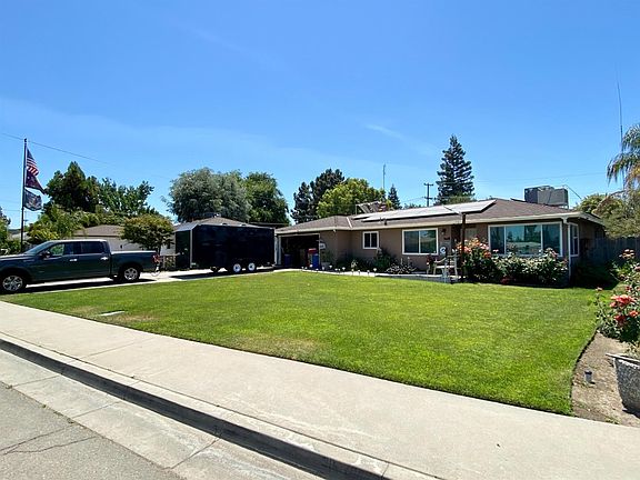 Home is BACK on the market clean and READY!!! Beautiful well maintained home in Kerman 3 houses down from Wooten park. Incredible large lot of over 9,000sqft with almost 100 rose bushes. It has 4 bedroom's 2 bathrooms, a dining room, wonderful family room that leads to the oversized enclosed patio. Kitchen has an electric stove but also has gas hook ups. There are 2 hot water heaters, 1 attached directly to owned solar and 2nd solar thru Viviant with a Pay per use agreement. AC installed a few years ago and a Mr. Cool Water cooler. Home has access ramp and hand rails. Drive way is long enough to park boat, camper and other toys or multipe cars.