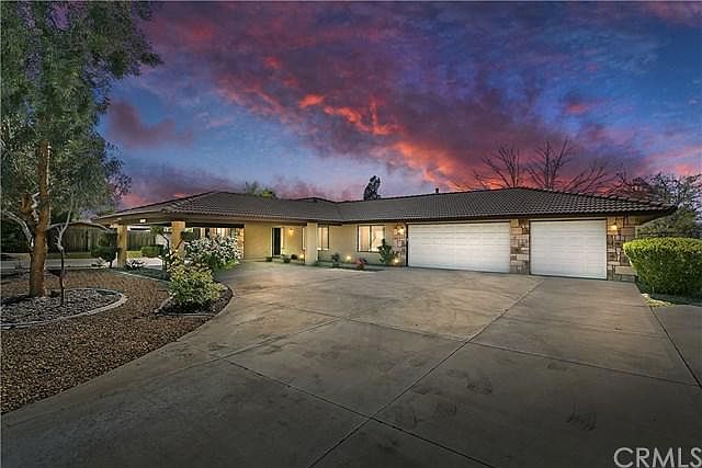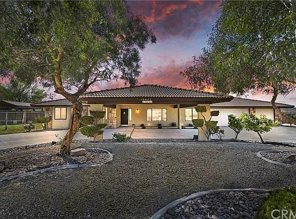 This beautiful single story home just smacks of curb appeal! Circular driveway comes complete with a large covered entry area, plus a 3 car garage. Open up that front door and step into a spacious formal living room, dining room area, complete with new flooring, paint and fixtures. Includes an open family room with stone faced corner fireplace. Perfect place to warm up after the sun goes down in the beautiful desert sky! Kitchen has all new cabinets, upgraded granite countertops, white subway tile backsplashes & new stainless steel appliances. Kitchen dinette area has windows that surround you with the outdoors as you sit and enjoy your meal. A separate laundry room with garden window, perfect for growing your own fresh herbs! The bath has a new tub, tiled surround, granite counters, sinks, fixtures, paint & tiled flooring. 2 large bedrooms with new carpet, paint, window seat cabinets for all the extras! Big master bed with french doors leading out to the large covered patio! The master bath shower has all new tiled surround, granite counters w/double sinks, & tiled flooring. Located on almost an acre of land, drive through to the back & find another 3 car garage w/workshop! Perfect for those who like to tinker on cars, with 10 foot ceilings & heavy duty metal beam to use to pull an engine with! Huge yard w/room for a big pool and a garden! Sit on the back porch, watch the sun go down and the stars come out and know this is your dream home!