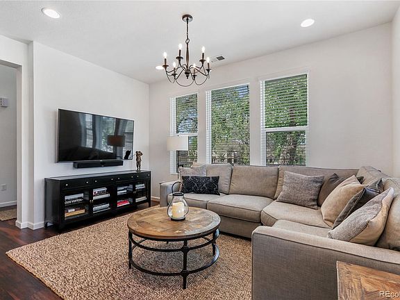 Don't miss seeing this immaculate 2-Story townhome located in the popular Westown community in Arvada. This 3 bedroom, 3 bathroom townhome has one of the BEST locations in the community. The property is an end unit that fronts to a greenbelt and backs to one of the community parks. The main floor consists of a family room, dinning room, kitchen, 1/2 bathroom and utility room. The kitchen includes an eat at island with sink, Whirlpool stainless steel appliances, soft close cabinets and under cabinet lighting. The family room includes a 66" flat screen T.V. with sound bar and woofer. The dinning area can seat a table of six. The backyard patio is accessible from the dinning area. Enjoy entertaining or just relaxing on the 8'x10' covered patio and a 8'x21' concrete extension which backs to a community park. The patio has an eastern exposure which is great without the western sun in the late afternoon and evening. The upper level offers a loft, 2 bedrooms, full bathroom, master bedroom and 5 piece master bathroom w/walk-in closet. The master bedroom has its own 6'x9' balcony above the lower patio overlooking the park as well. Great for a morning coffee or an evening beverage. Other features include...upgraded lighting fixtures throughout, Nest thermostat, video doorbell, water spigot in garage, plus so much more! The community offers access to the extensive Arvada walking paths and trails. Close to WestWoods Championship golf course, shopping, schools, major roads and highways.
