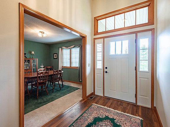 Custom built two-story on a walk-out lower level tucked away on 1.3 acres minutes from Leo High School. Main floor includes 12' ceilings in the living room with a vent less gas fireplace, formal dining room, open spacious kitchen, separate laundry room, and a wonderful master suite. Kitchen includes vinyl flooring, a big island, all appliances (dishwasher and microwave are new), a pantry, and solid custom hickory cabinetry. Master bedroom shows off luxury vinyl plank flooring, 10' ceilings, walk-in closet, jet tub, double vanity and water closet. Three large bedrooms with big closet on the second floor share tub/shower combo with double vanity. Lower level is amazing with a jumbo family room, full bath, recessed wet bar, and a walk-out to the beautiful yard. Bonus features include reverse osmosis water filtration, attic storage, rebuilt furnace and a/c units, Hurd brand high quality windows, and a 4" well for good water pressure. The lot has been pinned to show that the pond belongs to the neighbor. Take advantage of the beautiful view without the maintenance!