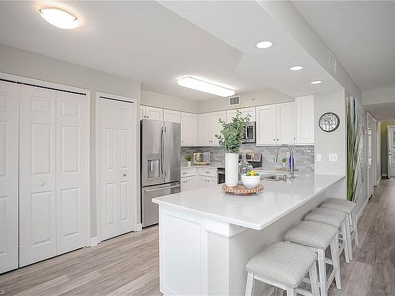 **NEW PRICE and now offered partially furnished. This hidden gem will go fast. Bring your best offer!** Enjoy breathtaking sunsets and peaceful preserve views in this rarely available WESTERN EXPOSURE unit in Bermuda Bay at Bay Forest! This SPACIOUS 2 bedroom, 2 bathroom condo features luxury vinyl flooring throughout, a desirable split floor plan, and a NEWLY REMODELED kitchen with white cabinets, quartz counters, new appliances, ample counter space and breakfast bar seating. Both bedrooms have access to a private full bath. An assigned detached GARAGE is an added bonus. 2 DOGS ALLOWED. Set among lush landscaping that showcases the natural beauty of this community. Well-established vegetation, banyan trees and 2 miles of biking and walking paths lead to a pier where you can enjoy fishing and kayak/canoe access to the Gulf. Bay Forest is an AMENITY-RICH community WEST of 41, with tennis courts, brand NEW PICKLEBALL COURTS, several community pools, bocce ball, shuffleboard and more. All in a LOCATION that can't be beat, with easy access to US-41, close to Mercato, shopping, dining, entertainment, within 2 miles of Barefoot Beach, Vanderbilt Beach and Delnor-Wiggins State Park.