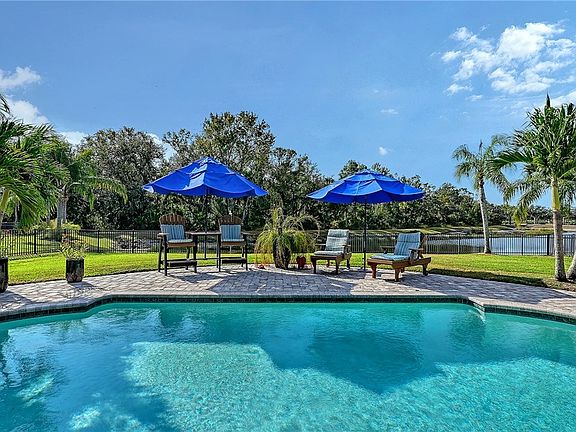 Enjoy the Best of Both Worlds — Country Living Just Minutes from Pristine Beaches! Twin River is a unique & beautiful community with large lots with room between homes, multiple playgrounds, basketball, soccer, picnic pavilions, nature trails and much more all with low HOA fees and NO CDD fees!! This exceptional estate home, set on over half an acre, offers true indoor–outdoor Florida living. With a southern-exposure lanai and pool area overlooking a peaceful pond and private wooded preserve, you’ll enjoy sun-soaked days, tranquil views, and total privacy. The expansive panoramic screened porch seamlessly blends the outdoors with your covered lanai, providing two inviting seating areas perfect for entertaining or unwinding. Step inside through the impressive 8' Therma-Tru hurricane-rated double doors and instantly feel the luxury. The spacious family room features a floor-to-ceiling stone fireplace wall, complete with a recessed TV niche for a clean, modern look. The gourmet kitchen is a chef’s dream, offering soft-close wood cabinetry with 42" uppers, under-cabinet lighting, a double-sided island, bar-height granite counters, and a walk-in pantry with built-in shelving. The sunny breakfast nook comfortably seats six. Retreat to the elegant primary suite with dual granite vanities, a large linen closet, a separate walk-in shower, a freestanding soaking tub, and a private water closet. Guest bedrooms 2 and 3 are thoughtfully positioned on the opposite side of the home for privacy, along with a full guest bath featuring a dual vanity and linen closet. The well-appointed laundry room includes a sink and generous storage. Travertine flooring flows through main living and wet areas, while all four bedrooms feature engineered hardwood. The interior was recently painted in warm earth tones, highlighted by crown molding in the main living areas, primary suite, and front bedroom/office. Abundant hurricane-impact windows bring in natural light and are dressed with custom wood plantation shutters. The sliding glass doors and garage doors are also hurricane-rated. Additional upgrades include new garage door openers and Icynene spray-foam insulation in the attic of both the home and garage, ensuring comfort and energy efficiency year-round. Car enthusiasts and hobbyists will love the oversized garage, finished with premium RaceDeck flooring and plenty of space for all your Florida toys. A long driveway provides ample guest parking, and the refreshed landscaping features easy-care plantings. The sparkling pool includes deck fountains, offering a relaxing ambiance. Residents enjoy access to a community boat ramp on the Manatee River, perfect for launching kayaks, canoes, or boats for a day on the water. Be sure to explore the virtual tour and experience the “Country WOW Factor” for yourself!