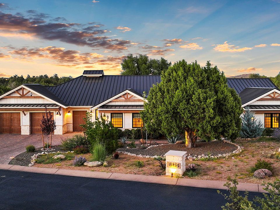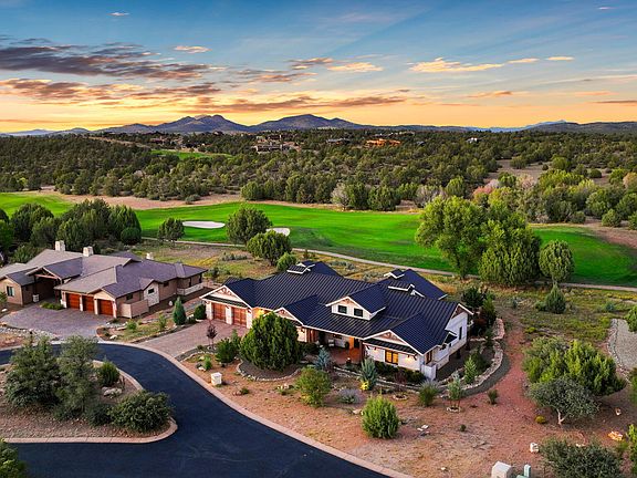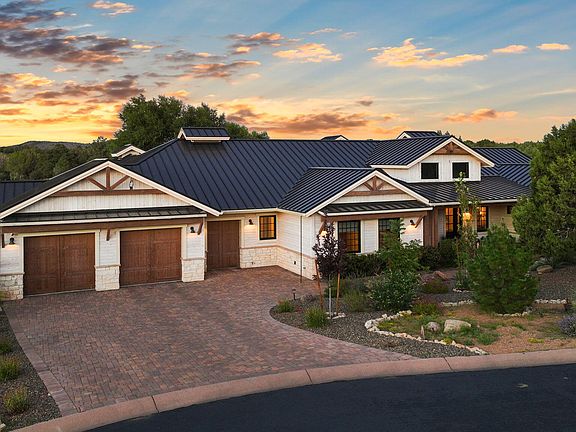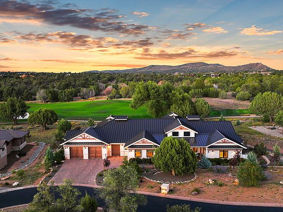 The design of this custom home is beautifully situated in a cul de sac location with mountain views & a front row seat overlooking the 11th Fairway of the 18 hole championship course. TRR offers unique dining experiences, club house, exercise rm & a sparkling, oversized, community pool, just to name a few amenities. Staggeringly beautiful living spaces flow throughout this sprawling 1-story, open floor plan, with multi-slide doors seamlessly connecting to the outdoors. House has a paver driveway in this sprawling luxury home has been perfectly chosen for lot & has a long-lasting black metal roof giving a classic look with symmetrical lines as you enter thru the front door. Foyer greets you with raised ceiling beams immediately catching your eye in great room, thru dining & into kitchen. Living room houses a cozy gas fireplace with carefully spaced limestone floor to ceiling for a grand appearance with an arched fireplace frame. White oak engineered flooring throughout is durable & ever-lasting with a warm color tone giving a light, airy feeling. A built-in nook tucked away in the dining room has lower storage cabinets, wine frig & lighting for ambience. Some kitchen features will capture your attention to detail like a cabinet-facing Thermador frig/freezer, & Thermador dual fuel range with steam oven & warming drawer. Easy pull out drawers encompass a spacious work area with abundant storage & large island inviting casual dining in the eat-in kitchen allowing plenty of quality prep & cook time with family or guests. The den or 4th bedroom has a deep walk-in closet, all other bedrooms have their own en suite baths and walk-ins as well with black marble countertops contrasting with bright white tiled shower surrounds. Primary suite is an enviable space with a wall of glass allowing more views of the beautiful greenery & access to the paver patio, the natural backyard & fairway. Primary then leads into a spa-like bath with his/hers walk-in closets, lower vanity, stand alone tub, walk-in shower & floating cabinetry with pull out drawers. Check out the 2.5 bay garage with epoxy flooring, a line of storage cabinetry & it has your golf cart bay! Stepping out back a covered patio space goes on forever with pavers that set the stage for entertaining & many uses including a seating area to watch the games with a SunBright no glare TV. A large propane firepit is the focal point for relaxation & to enjoy starlit nights after you grill up a feast at the built in BBQ area. Let's not forget a space for your pets to the north of the patio laid with artificial turf that continues around the plants & bushes lining the patio area. You'll find more improved professional landscaping surrounding the property with solar lighting, plants, trees & a private seating area looking east on a uncovered flagstone space.